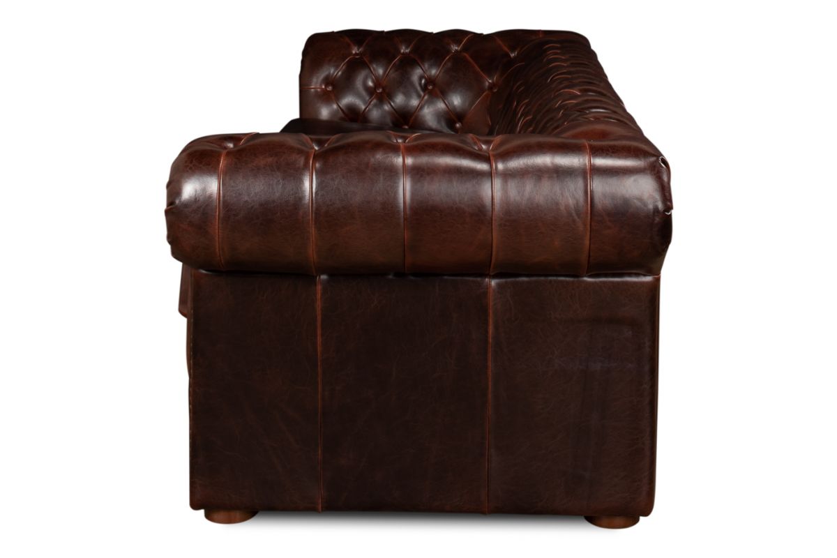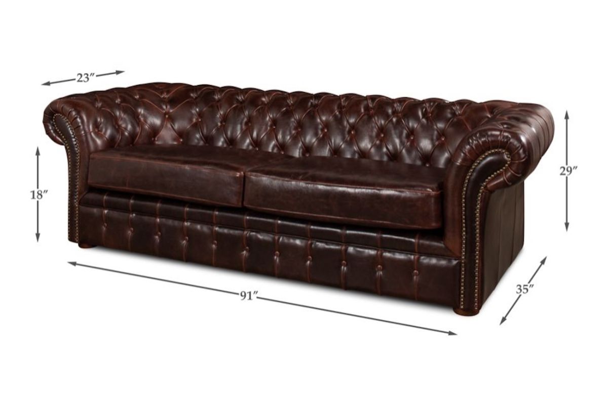 Part of our American Life Collection, the Piccadilly Sofa announces comfort and style with timeless confidence. Upholstered in rich Bycast cowhide leather, this statement piece brings warmth and refinement to any room. The deep button tufting across the back and seat adds depth and texture, while the gracefully rolled arms and hand-applied nailhead trim showcase classic craftsmanship. Built on a solid hardwood frame, the sofa combines traditional English charm with lasting durability. Generously cushioned for everyday comfort yet dressed in high-end detailing, the Piccadilly is the perfect blend of luxury and livability — a true centerpiece for those who appreciate heritage-inspired design.