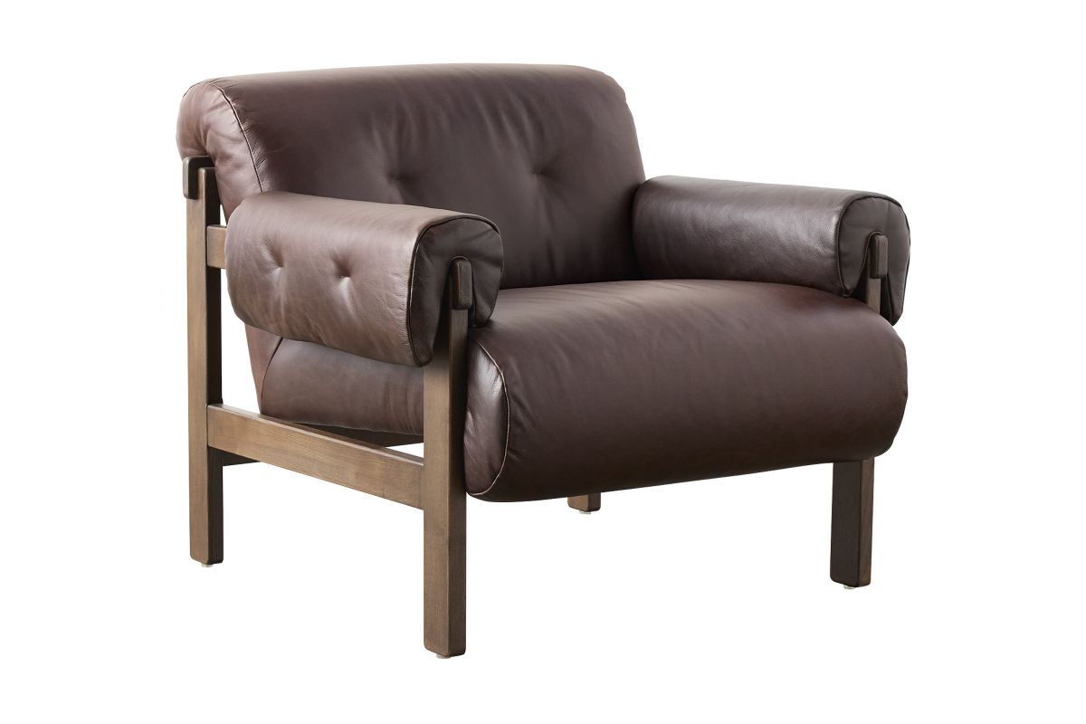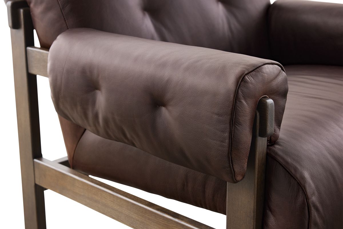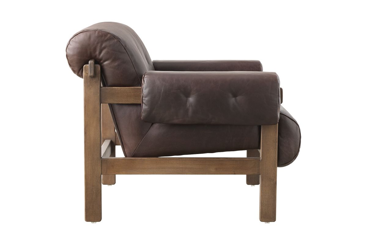This found fireside chair is the embodiment of comfort with its S-spring seating construction, plush seat and back, and feather fiber-filled arm cushions. Blind tufts on the arms and back lend a subtle detail that elevates the overall style.