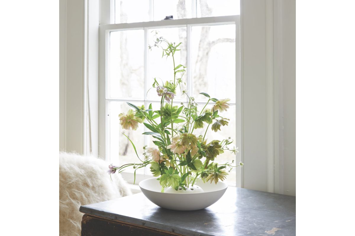This timeless piece has a built-in “frog” to help stems stand at attention, making it ideal for displaying delicate blooms along with herbs or foliage. It's a striking stand-alone piece to keep on your shelf when not in use.
