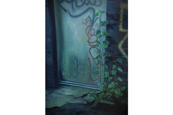 Marceline Mason is a Detroit-based artist whose work investigates the overlooked and ephemeral corners of urban environments, reimagining them as ethereal, tonal nocturnes. Reversing the role of the figure and the environment, Mason’s work depicts portraits of plant life set against a human world of light pollution and graffiti. In 2017 Mason received her MFA from Cranbrook Academy of Art with a focus in painting.