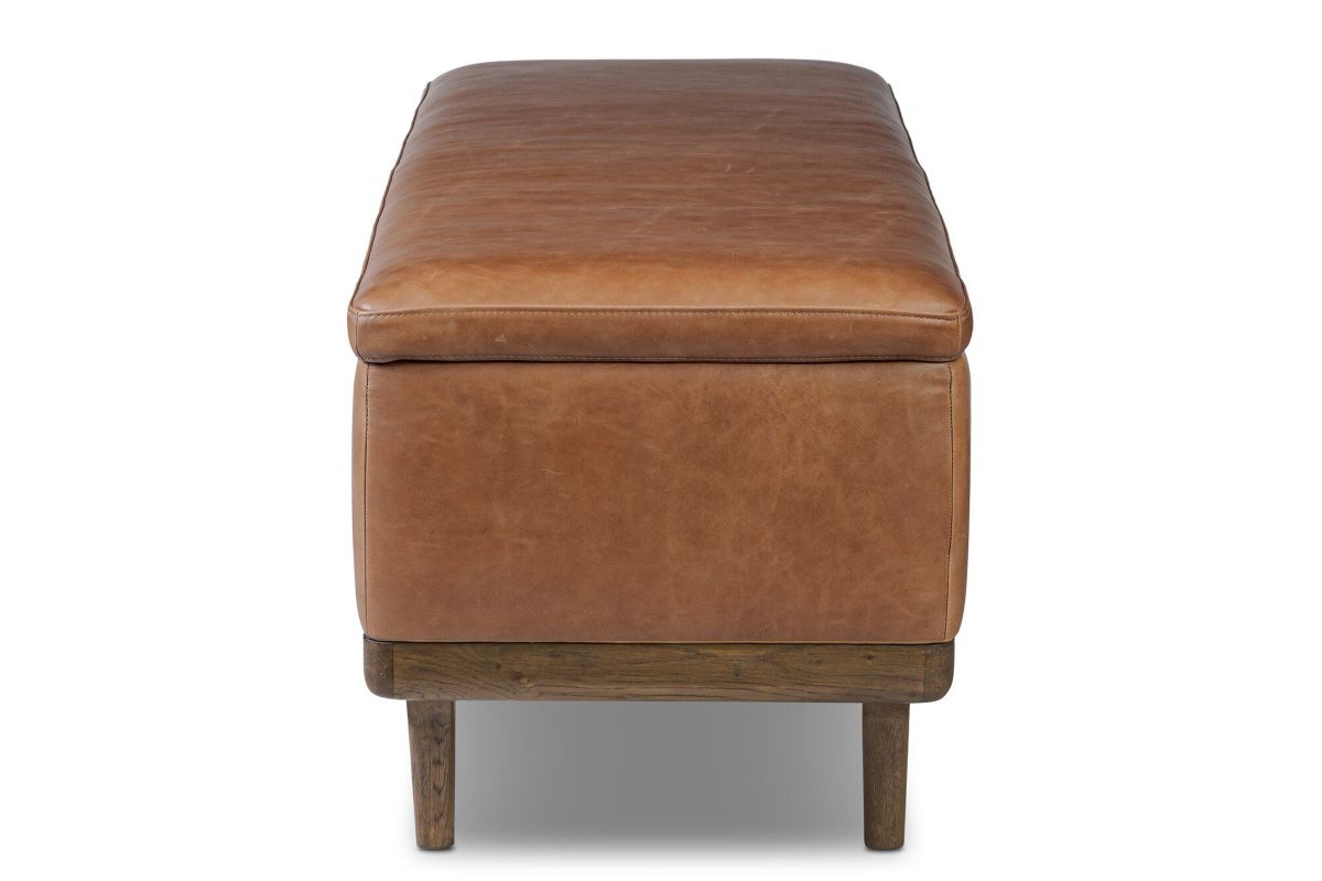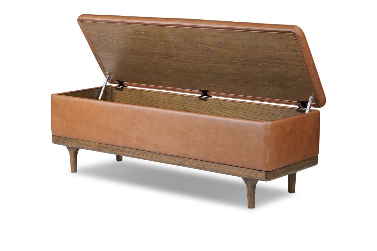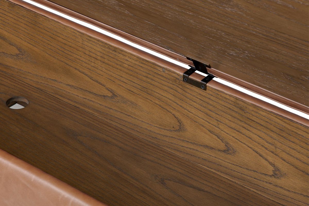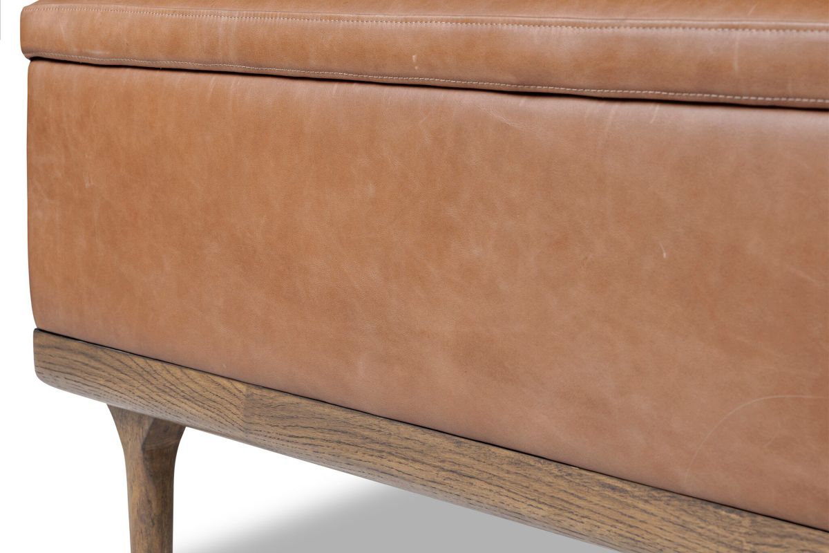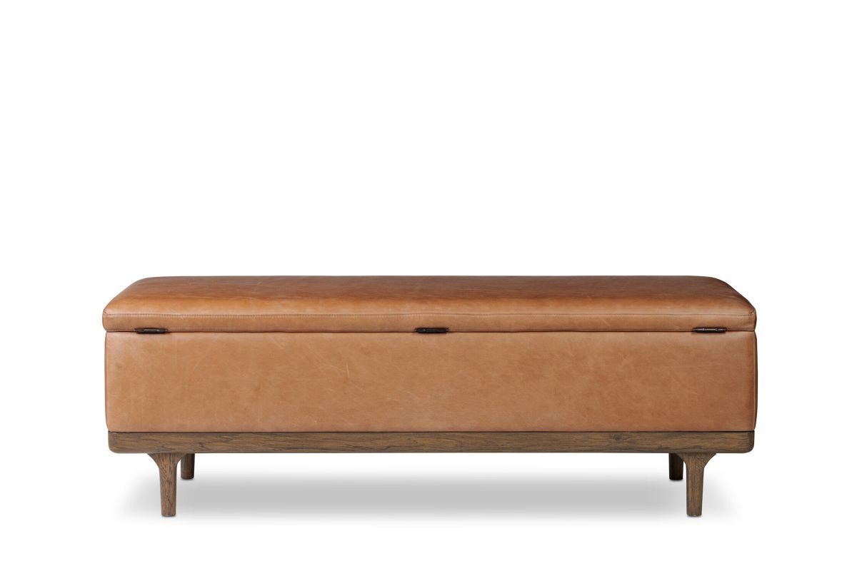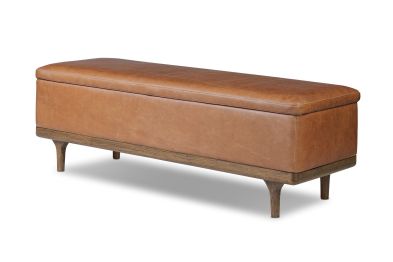 The Iris Trunk from Four Hand soffers sophisticated storage with versatile functionality. , this spacious chest serves elegantly as additional seating at the bed's foot or throughout your home. The distinguished oak frame features tapered legs with subtle Art Deco influence, enhanced by a refined worn oak finish.